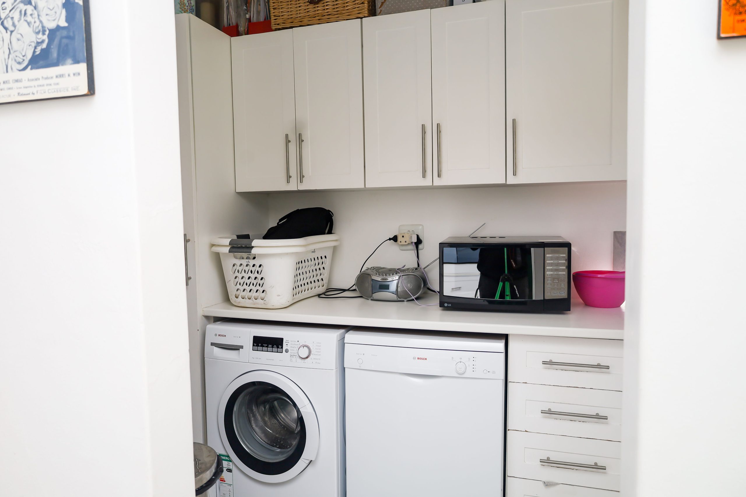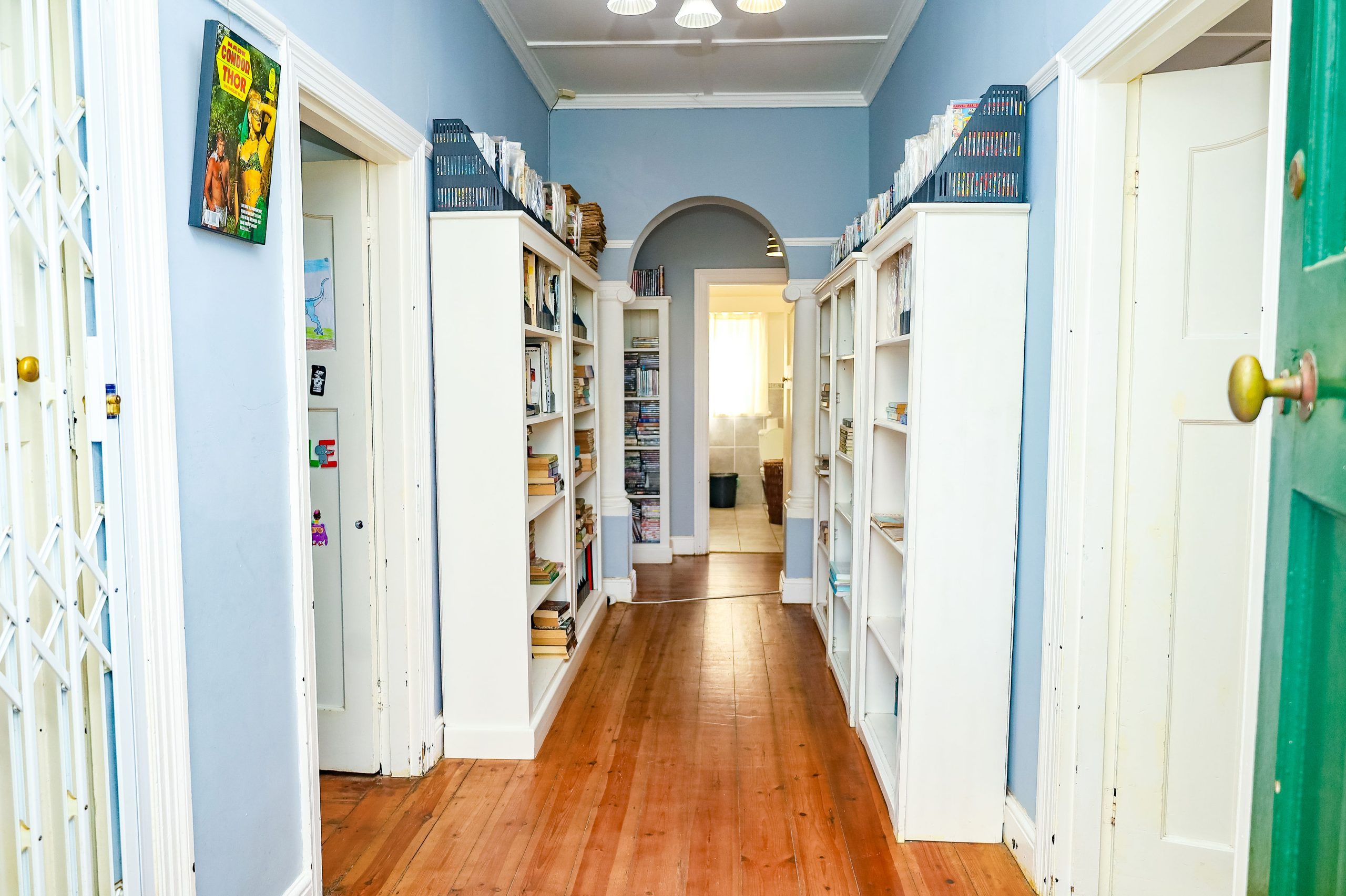 The home is larger than expected for a three-bedroom property, with comfortable proportions throughout. The living room features a fireplace for winter evenings, while an arched passage with pillars adds charm and architectural interest. A particularly practical feature is the unusually large pantry, which also functions as a laundry — a rare and highly useful addition for family living.